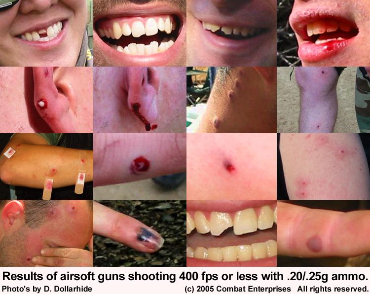 Вот, жуткие фото. Что может быть при попадании с близкого расстояния 400 фпс. Заботится о защите забывать нельзя! Особенно интересно как это шар в ухе застрял.