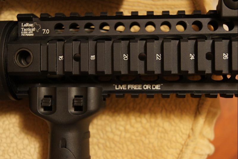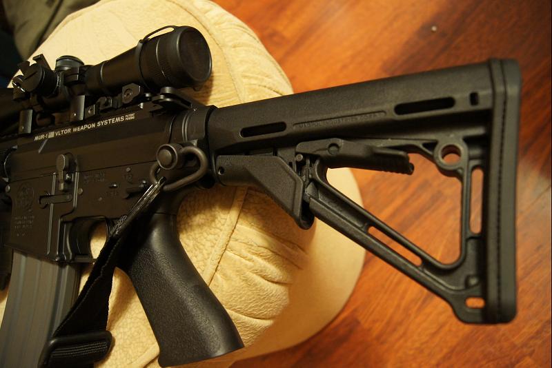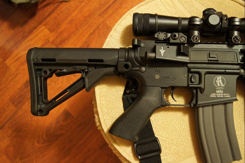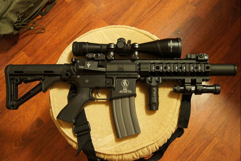 LaRue 7 несколько преобразился под дальнобойное орудие. Туша прошла не только внешний тюнинг но и получила надежные кишки гира, 140-ю пружину и 450 стволик от Классик-Арми 6.04. Так же сегодня был к салату добавлен мощный Гардеровский (красный) мотор, который на раз решил проблему "заедания" поршня в задней критической точке.