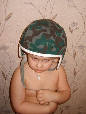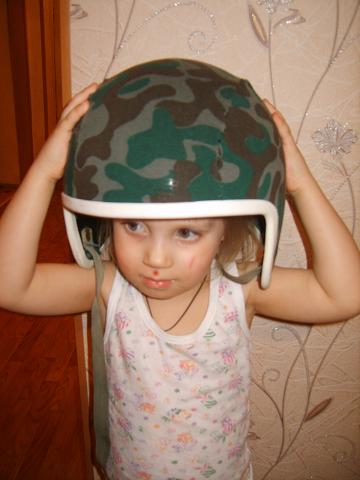 Мотоциклетный шлем найденый на ПВО+шапочка отнятая у сына+старая майка=Скат (поправил Commandos)