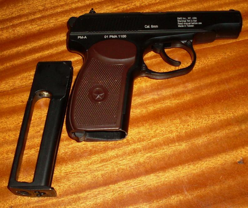 Заказал на Airsoft 66. Цена 2550 рэ. К нему так же купил и доп. магазин за 999рэ. Доставка осуществлялась (ТК Энергия) за 1 день. Стоимость 90рэ. Коробка упакована плотно. Внутри ничего не болталось. Собственно сама коробка. На вид - вполне удовлетворительно. внутри так же вложен шестигранник для закручивания винта баллона. Ну и собственно ОН Данный девайс весь металлический NBB (не блоубек). Работает от баллона СО2. Приятен на ощупь и вес. Соблюдена родная эргономика. Из минусов: -собран из двух половин -изначально имеет люфт и сидит ненадежно предохранитель. Из плюсов: -металл, и т.д. и все такое -хорошая скорость вылета шара (хотя изначально заявленно 80 м\с.) ИМХО: гораздо выше. Личный вывод: он охрененен. Стоит своих денег. Моя счастлив)))))))))))))